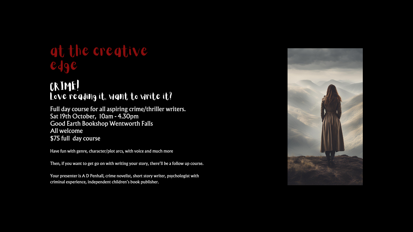 Upcoming events: A D Penhall is available for library, bookshop, writing workshop, festival and other events: anndpenhall@gmail.com October 2024.A workshop!A Rocking Boat event!